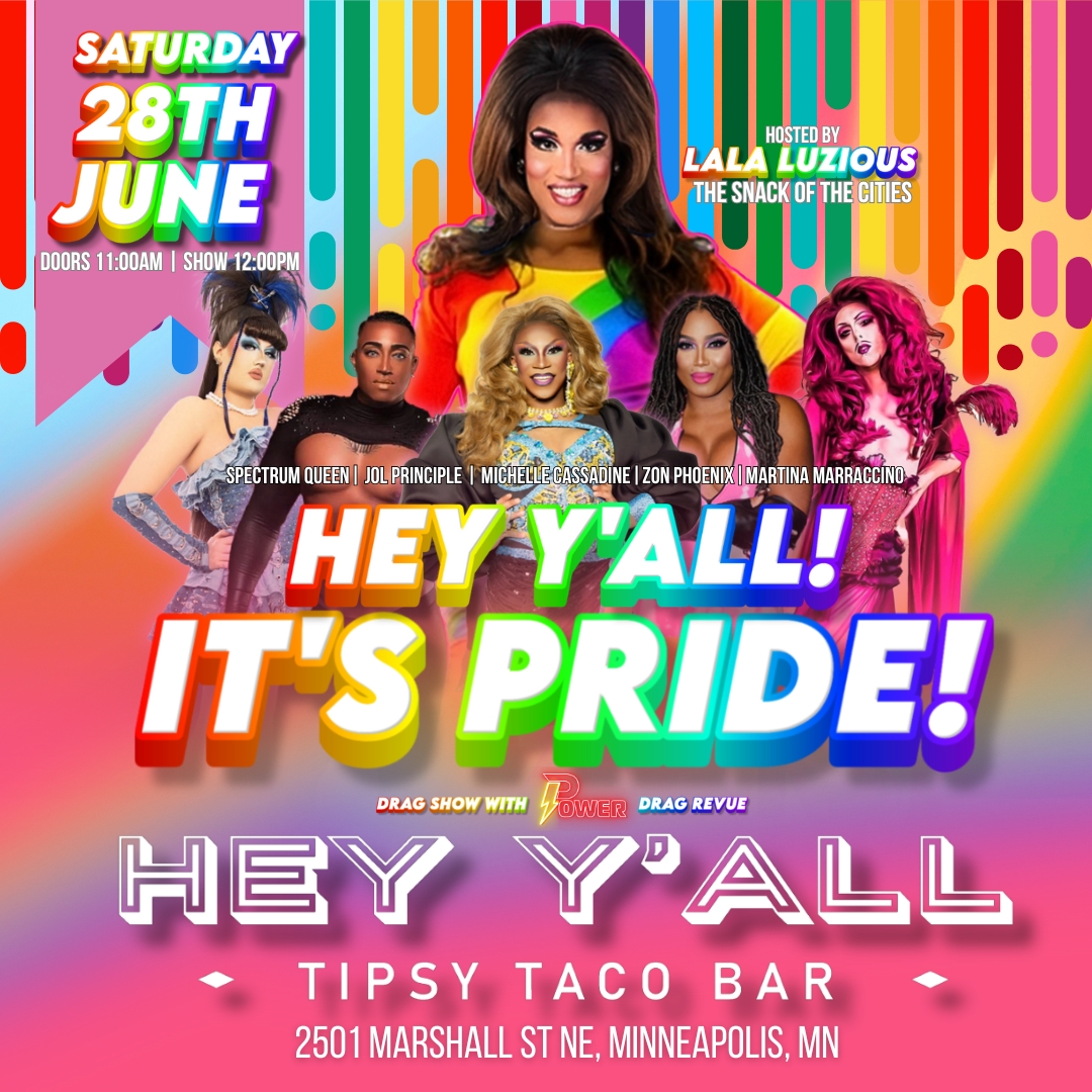 Hey Y'all 2501 Marshall Street Northeast, Minneapolis, MN, United StatesHoliday Drag Brunch at Hey Y’all Tipsy Taco BarCelebrate the season with sparkle, sass, and holiday cheer at Hey Y’all Tipsy Taco Bar (formerly Betty Danger’s) on Saturday, December 21 at noon. Join Lala Luzious, Power Drag Revue, and DJ Serenity for a festive Minneapolis holiday drag brunch packed with fierce performances, glamorous looks, and […]