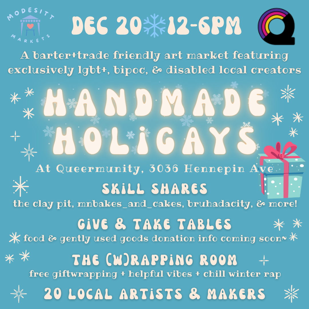 Queermunity 3036 Hennepin Ave, Minneapolis, MN, United StatesHandmade Holigays December 20, from 12-6 PM at @QueermunityMN, 3036 Hennepin Ave S. Organized by @ModesittMarkets. Come stamp your Holidays on Hennepin Passport! ~Over 25 local artists with one-of-a-kind goods, […]