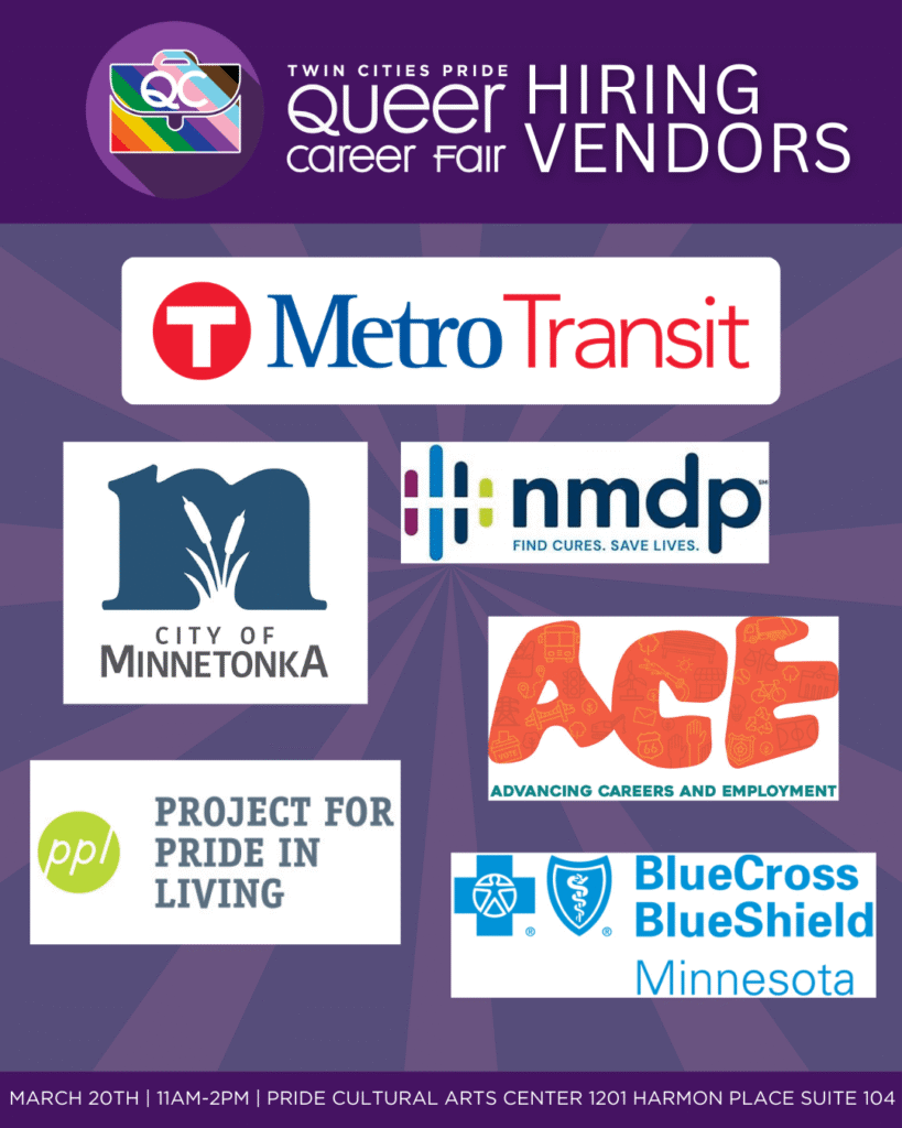 The Twin Cities Pride Career Fair provides a safe and accepting space for the community to network with professional individuals, organizations, and local businesses. The career fair provides community members with access to professional recruiters to review their resumes, run through interview questions and answers, provide intel on job hunting, meet with hiring employers and more. Having access to accepting and professional resources is incredibly important and something everyone has a right to.