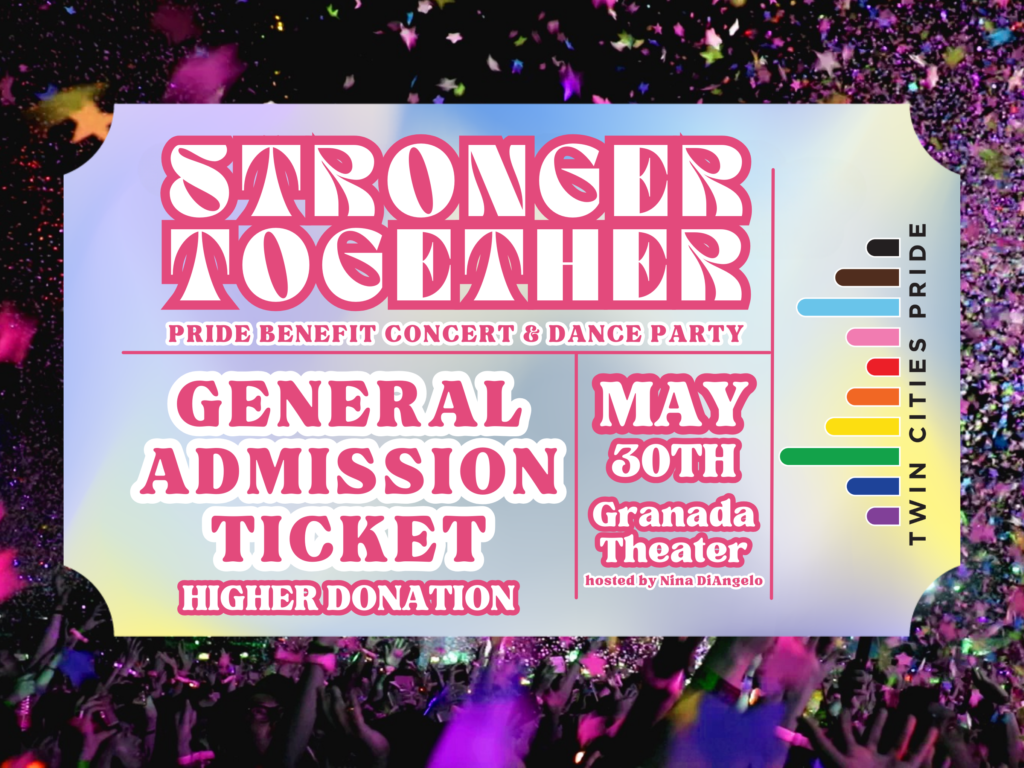Twin Cities Pride is currently facing a $200,000 funding deficit due to loss of sponsorships. To continue to fill the gap, we are planning the Stronger Together Benefit Concert and Dance Party [21+] hosted by Nina DiAngelo on May 30th at Granada Theater. We are excited to announce Richard Herod III with Car Guy Concierge as our presenting sponsor. They are graciously covering the costs of the event so that ALL proceeds will benefit Twin Cities Pride!